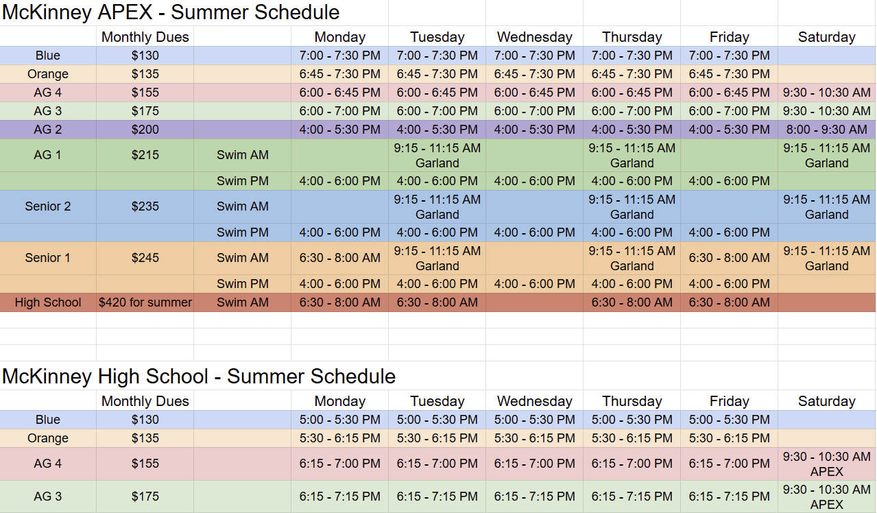 ➟ Swim group schedule and monthly fees are found under the McKinney Schedule page